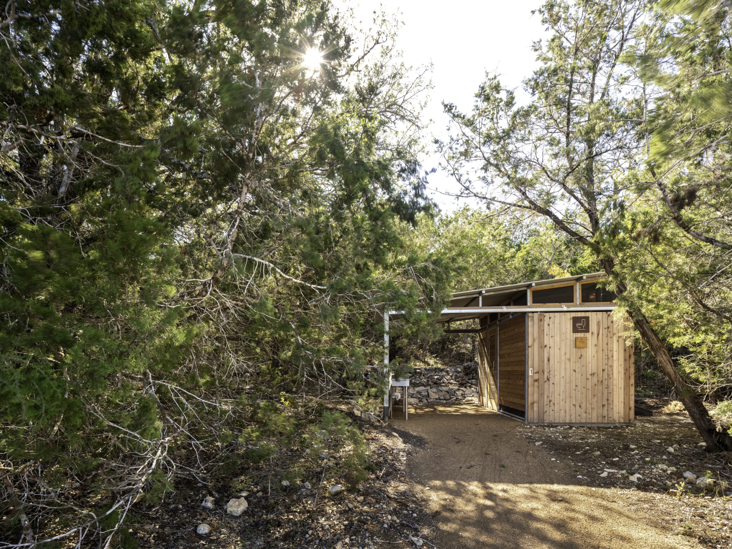 The Campsite also features ten evaporative toilets housed in four outhouse buildings. These systems require no water, sewer connection, or electricity. Solar radiation and airflow safely evaporate liquids and desiccate solids, ensuring zero contamination of the surrounding landscape.